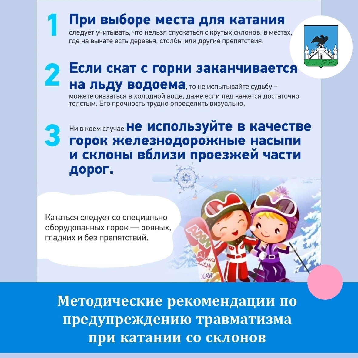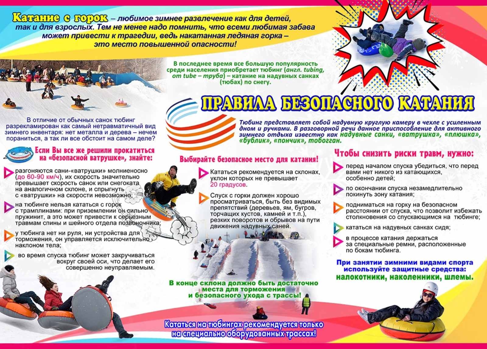 Также представляет огромную опасность катание с горок на подручных средствах (картонки, полиэтиленовые пакеты и т. п.).