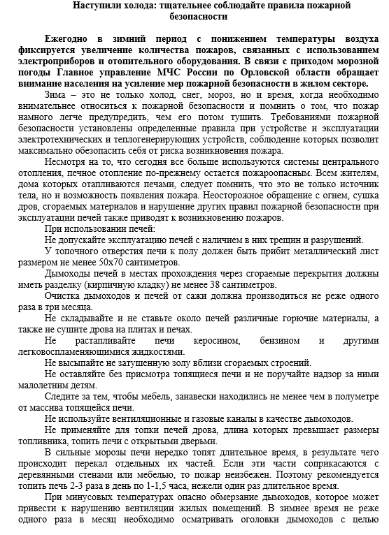 Безопасность в зимний период
